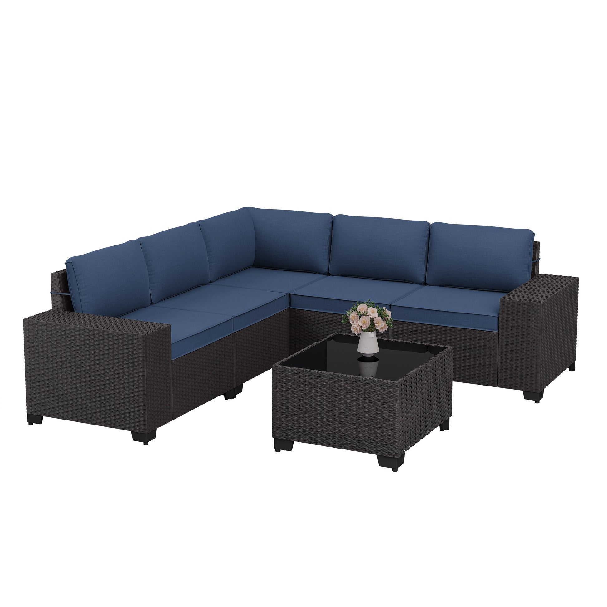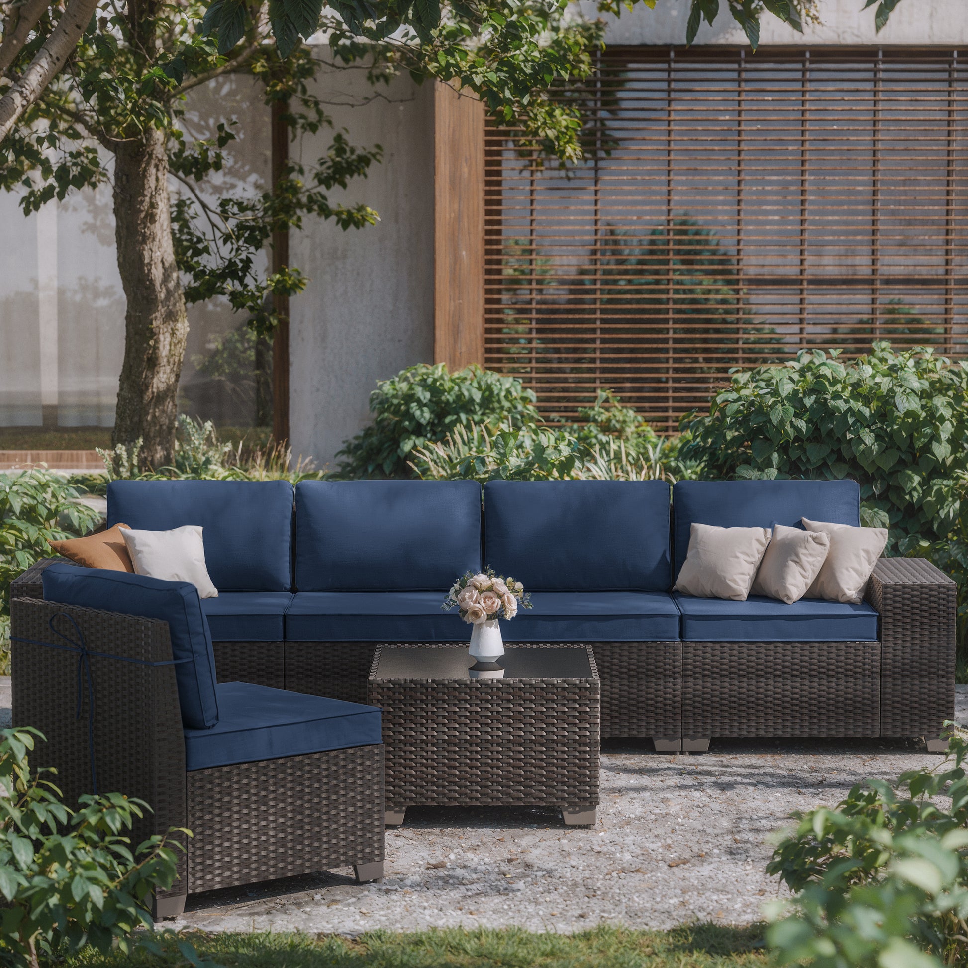 Modern 5-Person HDPE Rattan Outdoor Sectional Sofa Set